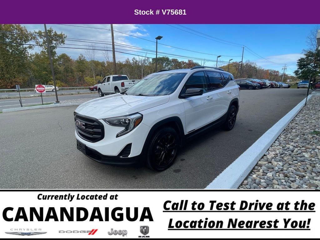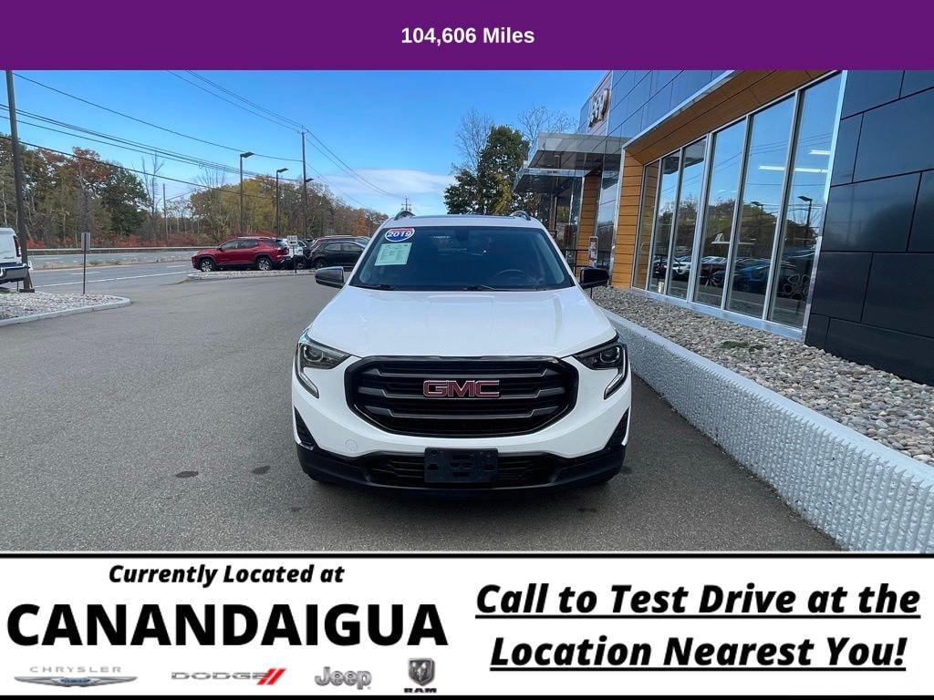 AWD, 2 USB Data Ports w/Auxiliary Input Jack, 3.47 Axle Ratio, 4-Way Manual Driver's Seat, 4-Way Manual Front Passenger Seat, 4-Wheel Disc Brakes, 6 Speakers, 6-Speaker Audio System Feature, 8-Way Power Driver Seat Adjuster, ABS brakes, Air Conditioning, Alloy wheels, AM/FM radio, Apple CarPlay/Android Auto, Auto-dimming Rear-View mirror, Black Edition, Black GMC Center Caps w/Black GMC Lettering, Black Mirror Caps, Bluetooth® For Phone, Brake assist, Bumpers: body-color, Compass, Darkened Front Grille, Delay-off headlights, Driver & Front Passenger Heated Seats, Driver Convenience Package, Driver door bin, Driver vanity mirror, Dual front impact airbags, Dual front side impact airbags, Dual-Zone Automatic Climate Control, Electronic Stability Control, Emergency communication system, Exterior Parking Camera Rear, Four wheel independent suspension, Front anti-roll bar, Front Bucket Seats, Front Center Armrest, Front reading lights, Fully automatic headlights, Heated door mirrors, High-Intensity Discharge Headlights, Illuminated entry, License Plate Front Mounting Package, Low tire pressure warning, Occupant sensing airbag, Outside temperature display, Overhead airbag, Overhead console, Panic alarm, Passenger door bin, Passenger vanity mirror, Power door mirrors, Power Driver Lumbar Control, Power steering, Power windows, Preferred Equipment Group 3SA, Premium Cloth Seat Trim, Radio data system, Radio: GMC Infotainment Audio System w/7" Display, Rear anti-roll bar, Rear seat center armrest, Rear window defroster, Rear window wiper, Remote keyless entry, Remote Start, Roof-Mounted Luggage Rack Black Side Rails, Security system, Skyscape Power Sunroof w/Power Sunscreen, Speed control, Speed-sensing steering, Split folding rear seat, Spoiler, Steering wheel mounted audio controls, Tachometer, Telescoping steering wheel, Tilt steering wheel, Traction control, Trip computer, Variably intermittent wipers, Wheels: 17" x 7" Silver Painted Aluminum, Wheels: 19" x 7.5" Gloss Black Painted Aluminum, AWD. 2019 GMC Terrain 4D Sport Utility SLE Summit White AWD 9-Speed Automatic 1.5L DOHC