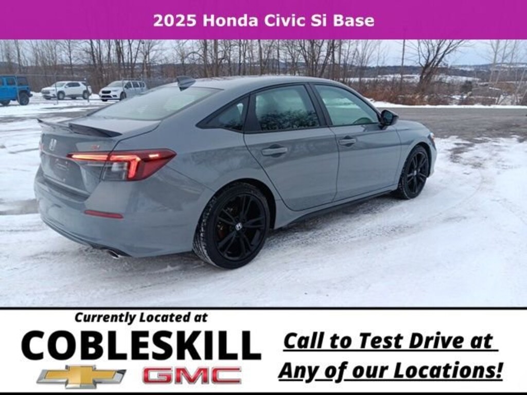 Save Time at the Dealership by Customizing your Deal Online!, One Owner, Accident Free, Super Low Miles, Upgraded Audio, Apple CarPlay/Android Auto, Bluetooth, Backup Camera, 18 Matte Black Alloy Wheels, 4-Wheel Disc Brakes, ABS brakes, Auto High-beam Headlights, Automatic temperature control, Blind Spot Information (BSI) System warning, BOSE Premium Sound System, Brake assist, Delay-off headlights, Dual front impact airbags, Dual front side impact airbags, Electronic Stability Control, Exterior Parking Camera Rear, Four wheel independent suspension, Front anti-roll bar, Front Bucket Seats, Front dual zone A/C, Fully automatic headlights, Heated door mirrors, Heated Front Bucket Seats, Knee airbag, Leather steering wheel, Low tire pressure warning, Navigation system: Google Maps, Occupant sensing airbag, Outside temperature display, Overhead airbag, Panic alarm, Power door mirrors, Power moonroof, Power steering, Power windows, Rear anti-roll bar, Rear side impact airbag, Rear window defroster, Remote keyless entry, Security system, Speed control, Speed-sensing steering, Steering wheel mounted audio controls, Tachometer, Telescoping steering wheel, Tilt steering wheel, Traction control, Variably intermittent wipers, 12 Speakers, Air Conditioning, Alloy wheels, AM/FM radio, Apple CarPlay/Android Auto, Bumpers: body-color, Cloth Seating Surfaces, Driver door bin, Driver vanity mirror, Front Center Armrest, Front reading lights, Heated front seats, Illuminated entry, Leather Shift Knob, Overhead console, Passenger door bin, Passenger vanity mirror, Radio data system, Rear seat center armrest, Split folding rear seat, Spoiler, Trip computer, 18 Matte Black Alloy Wheels, 4-Wheel Disc Brakes, ABS brakes, Auto High-beam Headlights, Automatic temperature control, Blind Spot Information (BSI) System warning, BOSE Premium Sound System, Brake assist, Delay-off headlights, Dual front impact airbags, Dual front side impact airbags, Electronic Stability Control, Exterior Parking Camera Rear, Four wheel independent suspension, Front anti-roll bar, Front Bucket Seats, Front dual zone A/C, Fully automatic headlights, Heated door mirrors, Heated Front Bucket Seats, Knee airbag, Leather steering wheel, Low tire pressure warning, Navigation system: Google Maps, Occupant sensing airbag, Outside temperature display, Overhead airbag, Panic alarm, Power door mirrors, Power moonroof, Power steering, Power windows, Rear anti-roll bar, Rear side impact airbag, Rear window defroster, Remote keyless entry, Security system, Speed control, Speed-sensing steering, Steering wheel mounted audio controls, Tachometer, Telescoping steering wheel, Tilt steering wheel, Traction control, Variably intermittent wipers. 2025 Honda Civic Si FWD 6-Speed Manual 1.5L I4 DOHC 16V Gray