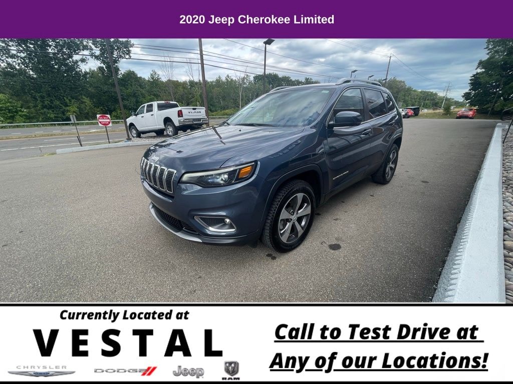 10 Speakers, 3.251 Axle Ratio, 3.734 Axle Ratio, 4-Wheel Disc Brakes, 8.4" Touchscreen Display, ABS brakes, Air Conditioning, Alloy wheels, AM/FM radio: SiriusXM, Anti-whiplash front head restraints, Apple CarPlay, Apple CarPlay/Android Auto, Audio memory, Auto-dimming Rear-View mirror, Automatic temperature control, AutoStick Automatic Transmission, Auxiliary Transmission Oil Cooler, Bluetooth, Brake assist, Bumpers: body-color, Compass, Delay-off headlights, Driver door bin, Driver vanity mirror, Dual Bright Exhaust Tips, Dual front impact airbags, Dual front side impact airbags, Electronic Stability Control, Engine Oil Cooler, Exterior Mirrors Courtesy Lamps, Exterior Mirrors w/Supplemental Signals, Four wheel independent suspension, Front anti-roll bar, Front Bucket Seats, Front Center Armrest, Front dual zone A/C, Front fog lights, Front reading lights, Fully automatic headlights, Garage door transmitter, Google Android Auto, GPS Antenna Input, Heated door mirrors, Heated front seats, Heated steering wheel, Illuminated entry, Integrated Voice Command w/Bluetooth, Knee airbag, Leather Shift Knob, Low tire pressure warning, Memory seat, Normal Duty Suspension, Occupant sensing airbag, Outside temperature display, Overhead airbag, Overhead console, Panic alarm, ParkView Rear Back-Up Camera, Passenger door bin, Passenger vanity mirror, Power door mirrors, Power driver seat, Power Liftgate, Power passenger seat, Power steering, Power windows, Premium Leather Trimmed Bucket Seats, Quick Order Package 2YG, Radio data system, Radio: Uconnect 4 w/8.4" Display, Rear anti-roll bar, Rear reading lights, Rear seat center armrest, Rear side impact airbag, Rear window defroster, Rear window wiper, Remote keyless entry, Roof rack: rails only, Security system, SiriusXM Satellite Radio, Speed control, Speed-sensing steering, Split folding rear seat, Spoiler, Steering wheel mounted audio controls, Stop-Start Multiple VSM System, Tachometer, Telescoping steering wheel, Tilt steering wheel, Traction control, Trip computer, Turn signal indicator mirrors, USB Host Flip, Variably intermittent wipers, Wheels: 18" x 7.0" Painted Diamond Cut Aluminum, Wheels: 18" x 7" Polished/Painted Aluminum. Odometer is 54717 miles below market average! 2020 Jeep Cherokee 4D Sport Utility Limited Slate Blue Pearlcoat 4WD 9-Speed 948TE Automatic 2.0L I4 DOHC