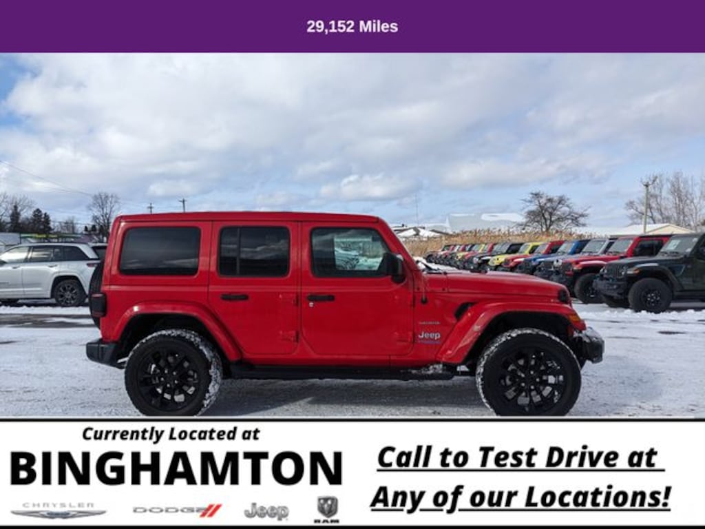 Boasting a striking Firecracker Red Clearcoat exterior, this Wrangler Unlimited Sahara 4xe 4XE is more than just a head-turner. It's a true testament to Jeep's commitment to innovation and performance. Equipped with a 2.0L I4 DOHC engine and 8-Speed Automatic transmission, this 4WD powerhouse delivers the off-road capability you expect from a Jeep, while the hybrid system provides impressive efficiency and reduced emissions.