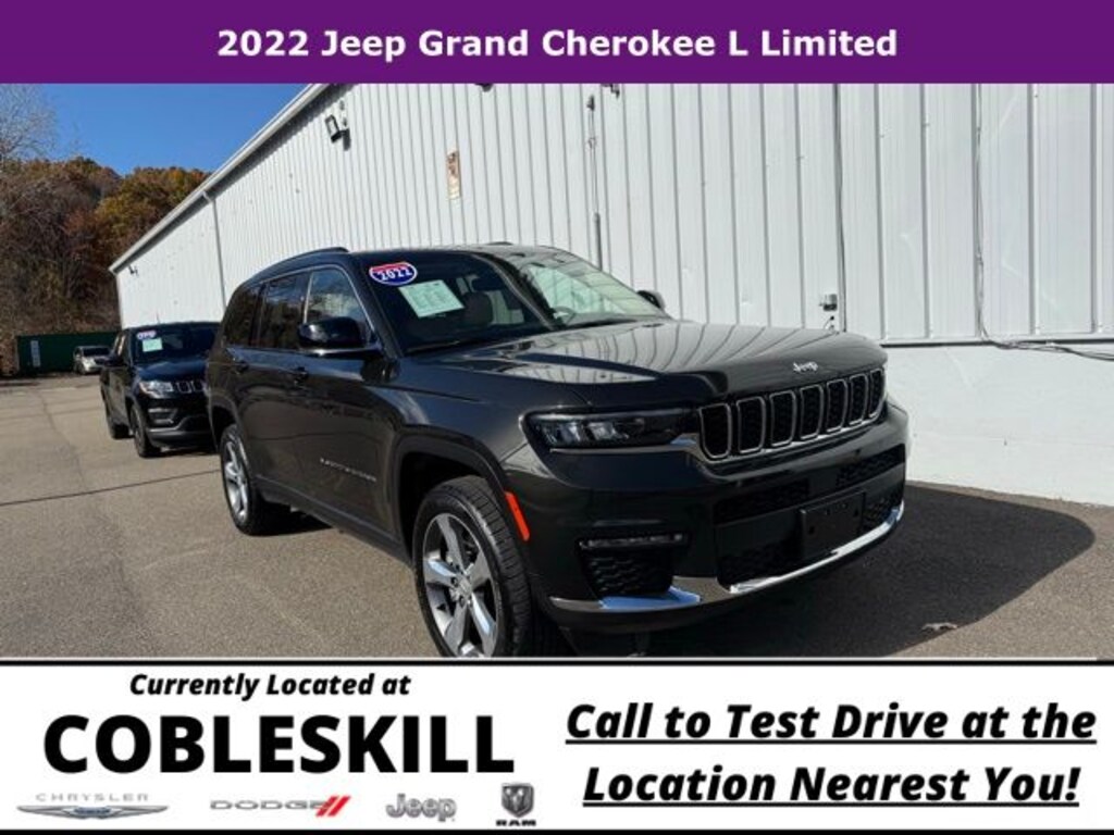 Save Time at the Dealership by Customizing your Deal Online!, 10.1" Touchscreen Display, 3.45 Rear Axle Ratio, 3rd row seats: split-bench, 4-Wheel Disc Brakes, 4G LTE Wi-Fi Hot Spot, 506 Watt Amplifier, 6 Speakers, 9 Amplified Speakers w/Subwoofer, ABS brakes, Active Noise Control System, Air Conditioning, All Radio Equipped Vehicles, Alloy wheels, AM/FM radio: SiriusXM with 360L, Anti-whiplash front head restraints, Apple CarPlay, Audio memory, Auto High-beam Headlights, Automatic temperature control, Brake assist, Bumpers: body-color, Capri Leather Seats, Compass, Connected Travel & Traffic Services, Connectivity - US/Canada, Delay-off headlights, Disassociated Touchscreen Display, Driver door bin, Driver vanity mirror, Dual front impact airbags, Dual front side impact airbags, Dual-Pane Panoramic Sunroof, Electronic Stability Control, Emergency communication system, For Details, Visit DriveUconnect.com, For More Info, Call 800-643-2112, Four wheel independent suspension, Front anti-roll bar, Front Bucket Seats, Front Center Armrest w/Storage, Front dual zone A/C, Front fog lights, Front reading lights, Fully automatic headlights, Garage door transmitter, Global Telematics Box Module (TBM), Google Android Auto, GPS Antenna Input, GPS Navigation, HD Radio, Heated door mirrors, Heated front seats, Heated rear seats, Heated steering wheel, Illuminated entry, Integrated Center Stack Radio, Integrated Voice Command w/Bluetooth, Interior Rear Facing Camera, Knee airbag, Leather steering wheel, Low tire pressure warning, Manual Fold Seatbacks, Memory seat, Normal Duty Suspension, Occupant sensing airbag, Outside temperature display, Overhead airbag, Overhead console, Panic alarm, ParkView Rear Back-Up Camera, Passenger door bin, Passenger vanity mirror, Power door mirrors, Power driver seat, Power Liftgate, Power passenger seat, Power steering, Power windows, Quick Order Package 22E, Radio data system, Radio: Uconnect 5 Nav w/10.1" Display, Radio: Uconnect 5 w/8.4" Display, Rear air conditioning, Rear anti-roll bar, Rear reading lights, Rear window defroster, Rear window wiper, Reclining 3rd row seat, Remote keyless entry, Security system, SiriusXM Radio Service, SiriusXM Satellite Radio, SiriusXM w/360L, Speed control, Speed-Sensitive Wipers, Split folding rear seat, Spoiler, Steering wheel mounted audio controls, Tachometer, Telescoping steering wheel, Tilt steering wheel, Traction control, Trip computer, Turn signal indicator mirrors, USB Host Flip, Variably intermittent wipers, Voltmeter, Wheels: 18" x 8.0" Fully Painted Aluminum 2, Wheels: 20" x 8.5" Polished/Painted Aluminum. 2022 Jeep Grand Cherokee L 4D Sport Utility Limited PANO ROOF NAVIGATION 4WD 8-Speed Automatic 3.6L V6 24V VVT Rocky Mountain Pearlcoat