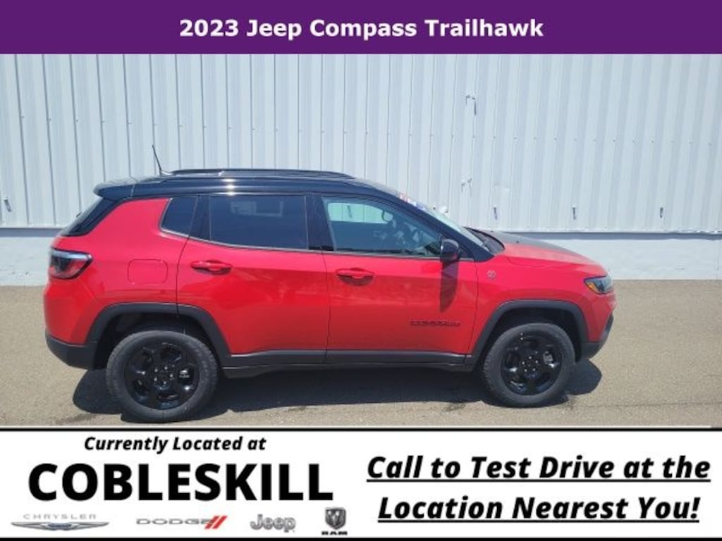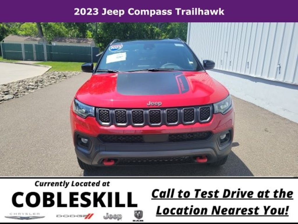 Save Time at the Dealership by Customizing your Deal Online!, One Owner, Accident Free, Super Low Miles, 4WD, Quick Order Package 29E, 10.1" Touchscreen Display, 4-Wheel Disc Brakes, 4.398 Final Drive Ratio, 6 Speakers, ABS brakes, Air Conditioning, Alloy wheels, AM/FM radio: SiriusXM, Auto High-beam Headlights, Auto-dimming Rear-View mirror, Automatic temperature control, Brake assist, Bumpers: body-color, Compass, Delay-off headlights, Disassociated Touchscreen Display, Driver door bin, Driver vanity mirror, Dual front impact airbags, Dual front side impact airbags, Electronic Stability Control, Four wheel independent suspension, Front anti-roll bar, Front Bucket Seats, Front Center Armrest w/Storage, Front dual zone A/C, Front fog lights, Front License Plate Bracket, Front reading lights, Fully automatic headlights, Heated door mirrors, Illuminated entry, Knee airbag, Leather Shift Knob, Low tire pressure warning, Occupant sensing airbag, Outside temperature display, Overhead airbag, Overhead console, Panic alarm, ParkView Rear Back-Up Camera, Passenger door bin, Passenger vanity mirror, Power door mirrors, Power steering, Power windows, Premium Cloth/Leather Trim Bucket Seats, Radio: Uconnect 5 w/10.1" Display, Rain sensing wipers, Rear anti-roll bar, Rear seat center armrest, Rear window defroster, Rear window wiper, Remote keyless entry, Security system, SiriusXM Radio Service, Speed control, Split folding rear seat, Spoiler, Steering wheel mounted audio controls, Tachometer, Telescoping steering wheel, Tilt steering wheel, Traction control, Trip computer, Turn signal indicator mirrors, Variably intermittent wipers, Wheels: 17" x 6.5" Painted Black Aluminum, New Brakes, New Tires!, 4WD, Quick Order Package 29E. Odometer is 38986 miles below market average! Priced below KBB Fair Purchase Price! 2023 Jeep Compass 4D Sport Utility Trailhawk 4x4 4WD 8-Speed Automatic 2.0L I4 DOHC Redline Pearlcoat