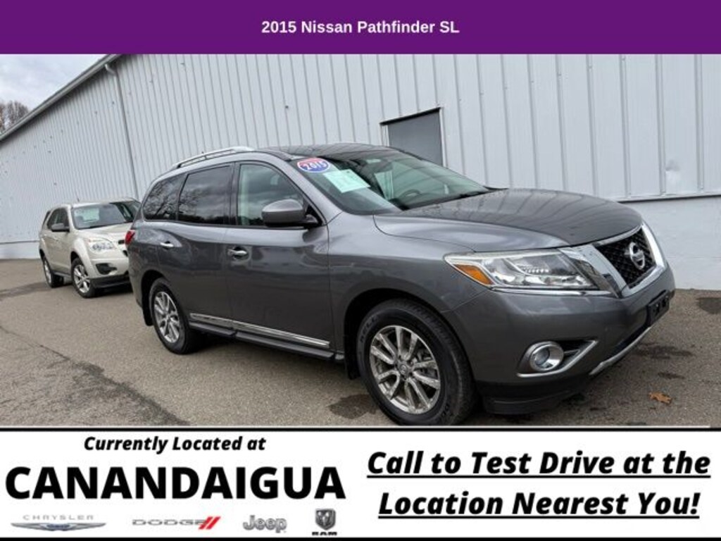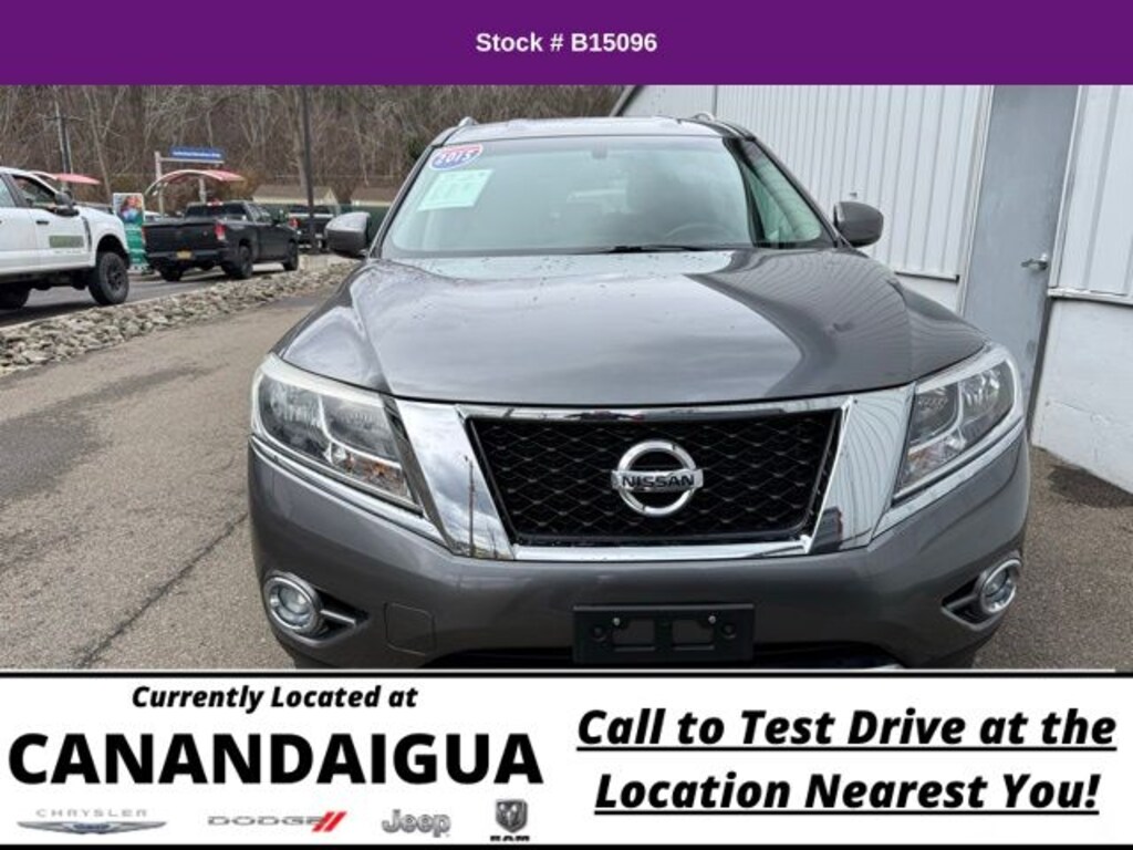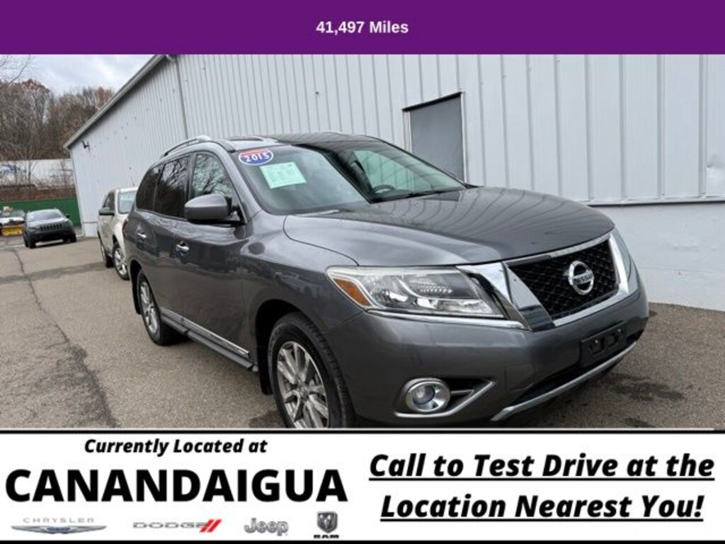 4WD, 18" Alloy Wheels, 3rd row seats: bench, 4-Wheel Disc Brakes, 5.577 Axle Ratio, 6 Speakers, ABS brakes, Activation Disclaimer, Air Conditioning, Alloy wheels, AM/FM radio: SiriusXM, Auto-dimming Rear-View mirror, Automatic temperature control, Black Splash Guards 4-Piece, Bodyside moldings, Brake assist, Bumpers: body-color, Cargo Package, Carpeted Floor Mat (4-Pc Set), CD player, Driver door bin, Driver vanity mirror, Dual front impact airbags, Dual front side impact airbags, Electronic Stability Control, First Aid Kit, Four wheel independent suspension, Front anti-roll bar, Front Bucket Seats, Front Center Armrest w/Storage, Front dual zone A/C, Front fog lights, Front reading lights, Fully automatic headlights, Garage door transmitter: HomeLink, Heated door mirrors, Heated Front & Rear Bucket Seats, Heated front seats, Heated rear seats, Illuminated entry, Leather Seating Surfaces, Leather Shift Knob, Leather steering wheel, Low tire pressure warning, Memory seat, Occupant sensing airbag, Outside temperature display, Overhead airbag, Overhead console, Panic alarm, Passenger door bin, Passenger vanity mirror, Power door mirrors, Power driver seat, Power Liftgate, Power passenger seat, Power steering, Power windows, Radio data system, Radio: AM/FM/RDS/MP3/1CD Audio System w/6-Speakers, Radio: Bose Audio System w/AM/FM/CD & 13 Speakers, Rear air conditioning, Rear anti-roll bar, Rear Bumper Protector, Rear Parking Sensors, Rear reading lights, Rear seat center armrest, Rear window defroster, Rear window wiper, Reclining 3rd row seat, Remote keyless entry, Roof rack: rails only, Security system, Speed control, Speed-sensing steering, Speed-Sensitive Wipers, Split folding rear seat, Spoiler, Steering wheel mounted audio controls, Tachometer, Telescoping steering wheel, Tilt steering wheel, Tonneau Cover, Traction control, Trip computer, Variably intermittent wipers, 4WD. 2015 Nissan Pathfinder 4D Sport Utility SL Gun Metallic 4WD CVT with Xtronic 3.5L V6