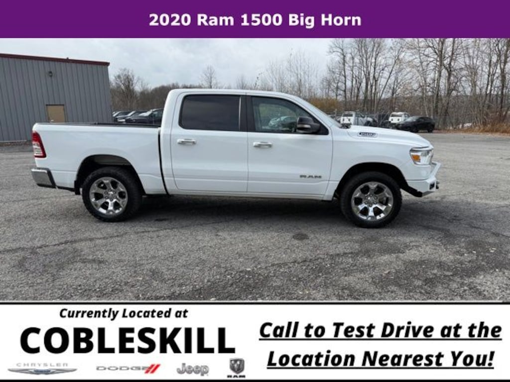 Save Time at the Dealership by Customizing your Deal Online!, 2nd Row In Floor Storage Bins, 3 Rear Seat Head Restraints, 3.21 Rear Axle Ratio, 4 Way Front Headrests, 4-Wheel Disc Brakes, 48V Belt Starter Generator, 6 Speakers, ABS brakes, Air Conditioning, Alloy wheels, AM/FM radio, Anti-Spin Differential Rear Axle, Auto-Dimming Rear-View Mirror, Big Horn Badge, Big Horn IP Badge, Big Horn Level 1 Equipment Group, Black Premium Power Mirrors, Brake assist, Bumpers: chrome, Class IV Receiver Hitch, Cloth Bench Seat, Cluster 3.5" TFT Color Display, Compass, Delay-off headlights, Driver door bin, Dual front impact airbags, Dual front side impact airbags, Electronic Stability Control, Foam Bottle Insert (Door Trim Panel), Front anti-roll bar, Front Center Armrest w/Storage, Front fog lights, Front reading lights, Front Seat Back Map Pockets, Front wheel independent suspension, Fully automatic headlights, Glove Box Lamp, GPS Antenna Input, Heated door mirrors, Illuminated entry, Leather steering wheel, Low tire pressure warning, Manufacturer's Statement of Origin, Occupant sensing airbag, Outside temperature display, Overhead airbag, Overhead console, Panic alarm, ParkView Rear Back-Up Camera, Passenger door bin, Passenger vanity mirror, Power 4-Way Driver Lumbar Adjust, Power 8-Way Driver Seat, Power Adjustable Pedals, Power door mirrors, Power steering, Power windows, Quick Order Package 25Z Big Horn, Radio data system, Radio: Uconnect 3 w/5" Display, Radio: Uconnect 4 w/8.4" Display, Rear 60/40 Folding Seat, Rear anti-roll bar, Rear Dome w/On/Off Switch Lamp, Rear Power Sliding Window, Rear seat center armrest, Rear step bumper, Rear Window Defroster, Remote keyless entry, Remote Start System, SiriusXM Satellite Radio, Speed control, Split folding rear seat, Steering wheel mounted audio controls, Sun Visors w/Illuminated Vanity Mirrors, Tachometer, Telescoping steering wheel, Tilt steering wheel, Traction control, Trip computer, Universal Garage Door Opener, Variably intermittent wipers, Voltmeter, Wheels: 18" x 8" Cast-Aluminum Painted, Wheels: 20" x 9" Aluminum Chrome Clad (WRK). 2020 Ram 1500 4D Crew Cab Big Horn/Lone Star 4WD 8-Speed Automatic HEMI 5.7L V8 Multi Displacement VVT Bright White Clearcoat